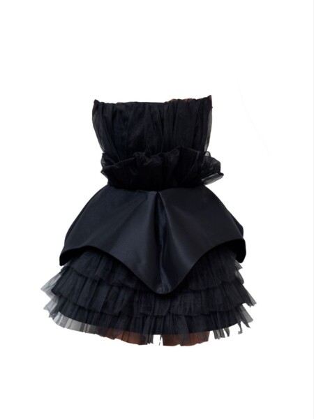 پیراهن دکلته ساتن و تور